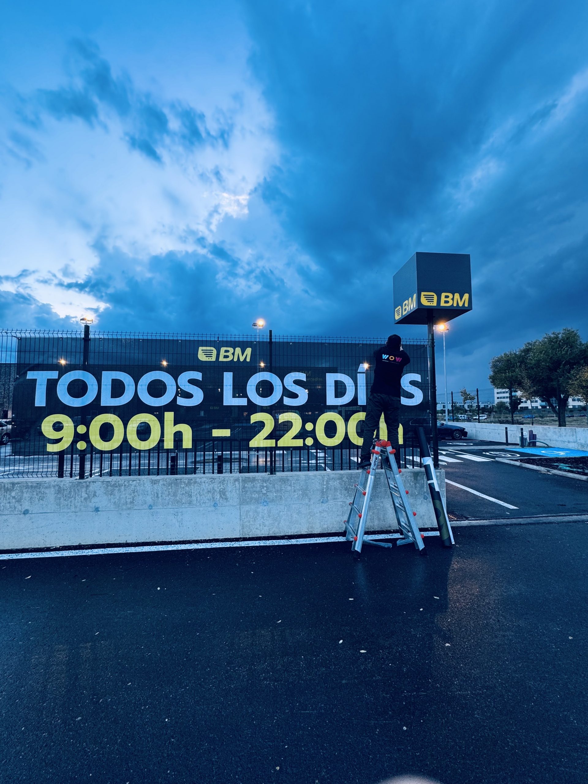 Ayudamos al refuerzo de la identidad visual de una marca mediante la aplicación de logotipos, textos o gráficos en cristales o fachadas.